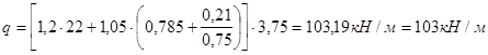 q = (np ·pn +ng ·gn )·a = (1,2·22 + 1,05·0,785)·0,789 = 21,48 кН /м