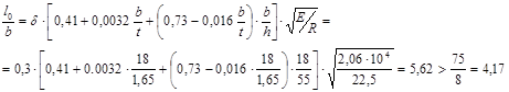 b = 18 см, t = 1,65 см, g = 89,8 кг/м