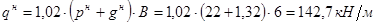 N = 1,01·(np ·p + ng ·g) ·A·B = 1,01·(1,2·22 + 1,05·1,5) ·15·6 = 2540 кН