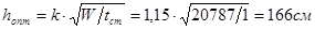 hp = N/4 βf · kш · Rуш ·γуш ·γс = 2540000/4·0,7·0,8·18000·1·1 = 62 см .