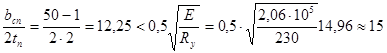 где Ry = 205 МПа – при толщине листов 21 – 40 мм.