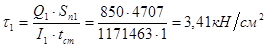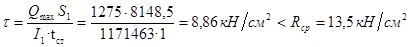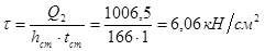 τуш = Fпл /Ауш = 55,5/18,72 = 2,9 кН/см2