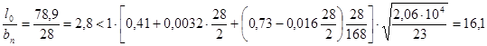 где R = 28 кН/м2 – расчетное сопротивление для стали марки Вст 3nc6 – 2 радиус инерции: