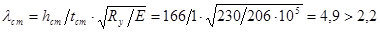 Т.к. λпр = λх , напряжение можно не проверять, колонна устойчива в двух плоскостях.