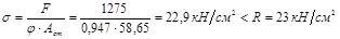 σ = N/φ A = 2540/0,8·123 = 25,8 кН/м2 < R = 28 кН/см2