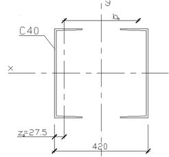 Полученное расстояние должно быть не менее двойной ширины полок швеллеров плюс зазор, необходимый для оправки внутренних поверхностей стержня bтр = 2·115 + 100 = 330 мм < 42 см , следовательно принимаем ширину колонны = 420 мм.