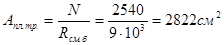 Aтр = N/( φ· R) =2540/0,785·28 = 115,5 см2 ,