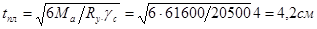 Требуемую толщину плиты определяем по Ма :