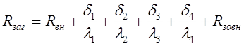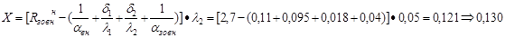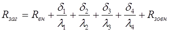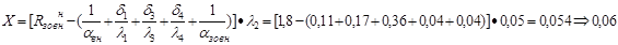 R4=0,018 – термічний опір замкненого повітряного прошарку (при потоці тепла знізу вгору, при від’ємній температурі повітряного прошарку)