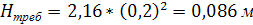 – свободный напор на излив, м, принимается по СНиП 2.04.01-85 (приложение 2);