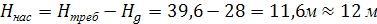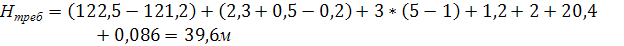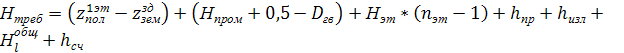 Требуемый напор в месте присоединения к городскому водопроводу при наибольшем хозяйственно – питьевом водопотреблении должен обеспечить подачу воды на необходимую высоту и определенный минимальный свободный напор в точках водоразбора.