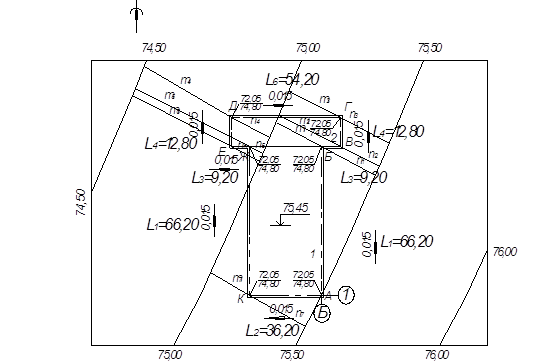 Абсолютная планировочная отметка земли Н0 = 75,45 м.