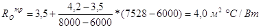 Требуемое термическое сопротивление ограждающей конструкции определяется интерполяцией (табл.1а* (5)): 6000 – 3,5 8000 – 4,2