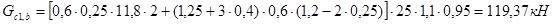 Расчетная нагрузка от веса стеновых панелей и остекления на участке между отметками 7,2 ….. 10,2 м (