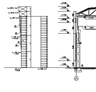 Жесткость здания в поперечном направлении обеспечивается защемлением колонн в фундаментах и размерами сечений колонн, назначенными в соответствии с рекомендациями гл.XII [9].