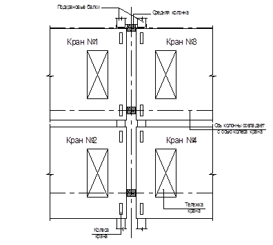 Каждый пролет здания оборудован двумя мостовыми кранами с группой работы 5К и грузоподъемностью 20/5 т. Отметка верха кранового рельса 9,2 м, высота кранового рельса 150 мм (тип КР-70).