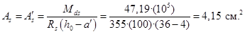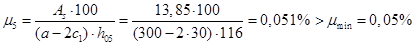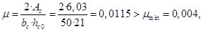 (хотя бы в одном из сечений) следует увеличить диаметр принятой арматуры или уменьшить её шаг.
