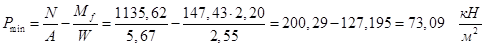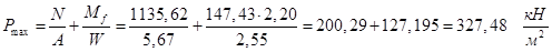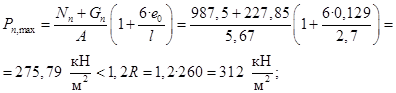 При принятых размерах подошвы фундамента нормативное давление на грунт составит: