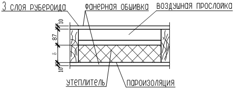 5. Фанерная обшивка g0 = 600 кг/м3; d5 = 10 мм; l5 = 0.18 Вт/(м×С0 );
