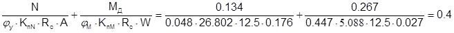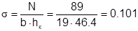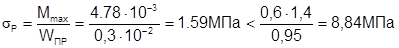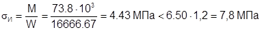 s=М/Wнт =264.6/3022=0.088 кН/см2 <Rи=1.4/0.95=1.47 кН/см2