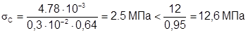 s=Np /Ант =13.76/2.18=6.3<0.8×R=0.8×24=19.2 кН/см2 .
