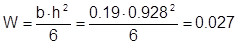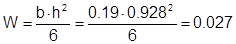 W=2×b×l2 /6=2×9×48.52 /6=7056.75 см3 , где b=9 см–ширина опорной плоскости башмака, l=48.5 см – длина опорной плоскости башмака.