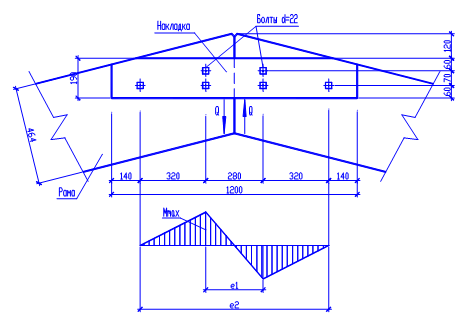 Коньковый узел решаем с помощью деревянных накладок и болтов. На накладки толщиной а=10 см действует поперечная сила от односторонней снеговой нагрузки: