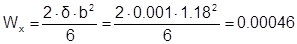 Изгибающий момент в обшивке М = Р×с/8 = 1,2×492/8 =73.8 кН×мм. Момент сопротивления обшивки шириной 1000 мм.