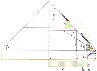 Общие указания Санитарно-гигиенические требования, освещенность и инсоляция 1.1*. Высота жилых помещений от пола до потолка должна быть не менее 2,5 м, для климатических подрайонов IA, IБ, IГ, IД, IIА - не менее 2,7 м. Высоту этажей от пола до пола для жилых домов социального назначения рекомендуется принимать не более 2,8 м, для климатических подрайонов IA, IБ, IГ, IД, IIА - не более 3,0 м. В. Высота внутриквартирных коридоров должна быть не менее 2,1 м. Используя данную норму и правило определения площади мансардного этажа (приложение 2, п.б), мы можем получить формулу расчета возможности использования чердака в жилых целях: а > b + 0,7хс; где а - площадь помещения с высотой выше 2,5 м, b - площадь помещения с высотой от 1,1 м до 2,5 м, с - площадь помещения с высотой от 0,8 м до 1,1 м (см. рис.1).