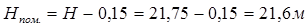 Н1 =Нг.р.+0,15,