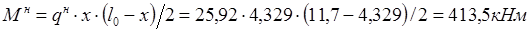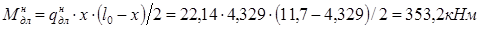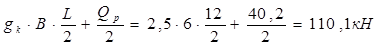 где gк =1 кН/м2 +1,5 кН/м2 =2,5 кН/м2 – расчетная нагрузка от веса 1 м2 кровли и плит покрытия;