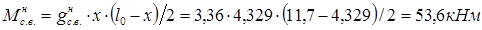 где Sg =1,8 кН/м2 снеговая нагрузка в зависимости от района строительства; μ = 1, Fсн прикладывается так же как и Fп.