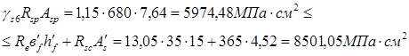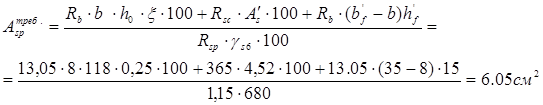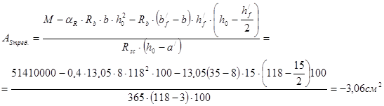 asp =8 (см); Ared 1673 (см2 );