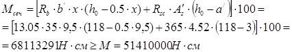 Rв, ser =18,5 (МПа); Rв t , ser 1,6(МПа); М н =41350000 (Нсм);