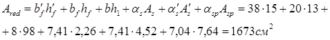Ared =1673(см2 ); Ired =3378662,2 (см4 ).