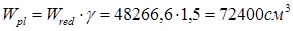 W’red =60333,3 (см3 ); W’pl =90500 (см3 ); yн =70 (см);