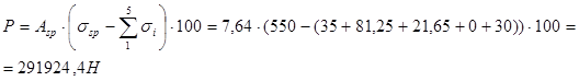 Определяем усилие обжатия с учетом первых потерь: