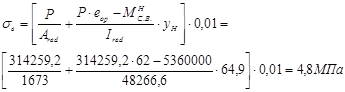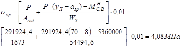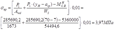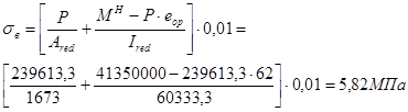 Определяем напряженияв бетоне от усилия обжатия: