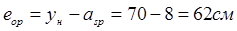 e = hн/2 – hв/2=1,2/2-0,4/2=0,4м;