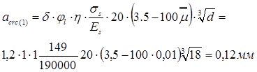 Вычисляем ширину раскрытия трещин: [1, п.4.14]