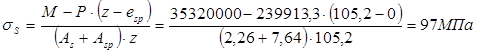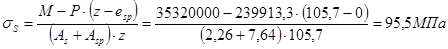 Определяем усилие обжатия в бетоне при обжатии в уровне центра тяжести преднапряженной арматуры: