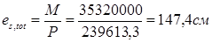 Сила Fп приложена на расстоянии 150 мм от разбивочной оси, поэтому эксцентриситет приложения силы относительно оси надкрановой части колонны: