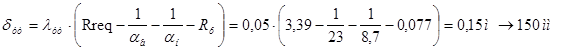 aint = 8,7 Вт/(м2 ×°С) - по табл. 4*[2], aext = 23 Вт/(м2 ×°С) - по табл. 6*[2].