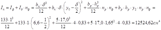 Приведенный момент инерции плиты относительно нейтральной оси