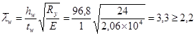Принимаем требуемый катет шва kf =5 мм (в соответствии с табл.38 СНиП II-23-81*).