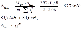 М1 = α×σ×a2 =0,125×0,69×6,62 =3,8 кН/см.