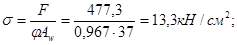 где: Rр =370/1,025=361 МПа – расчетное сопротивления смятию торцевой поверхности.