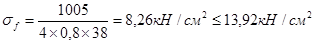 lf = lб –2=40–2=38 см.<85×βf ×kf =85×0,8×0,7=47,6 см, требование к макси-мальной длине швов выполнено.