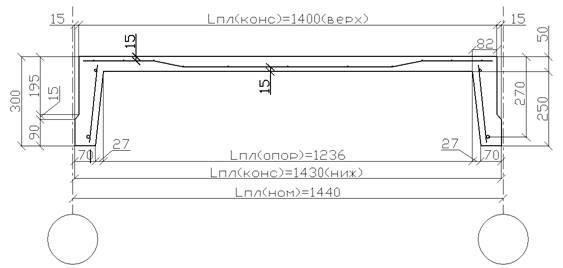 Конструктивная ширина плиты принимается на 1см (0,01м) меньше номинальной ширины, равной по величине принятой ширине b пл = 1,44м. Высоту плиты принимаем равной 30см.