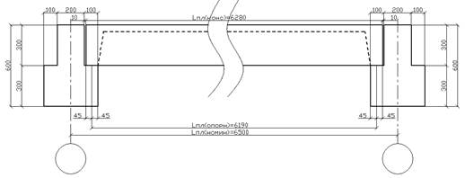 Учитывая размер ригеля и величину номинальной длины плиты, определим конструктивную длину плиты по формуле: